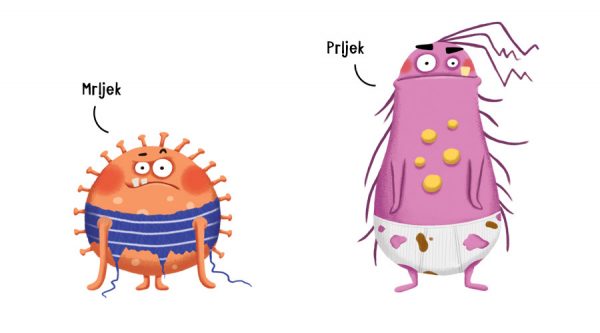Mrljek i Prljek dvije su zloćkaste bakterije koje vole boraviti na masnim dječjim kosama, neopranim zubima, prljavim rukama, znojnim nogama i u neurednim sobama. Gdje god se pojave prave veliki kaos bljakaos i misle da su nepobjedivi. Ipak, djeca dobro znaju da se pravilnom higijenom Mrljeka i Prljeka možemo riješiti u svakom trenutku.