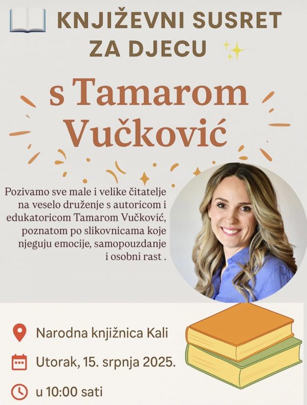 S veseljem najavljujemo dolazak Tamare Vučković, učiteljice, edukatorice i autorice popularnih slikovnica za djecu, koja će 15. srpnja gostovati u našoj knjižnici!