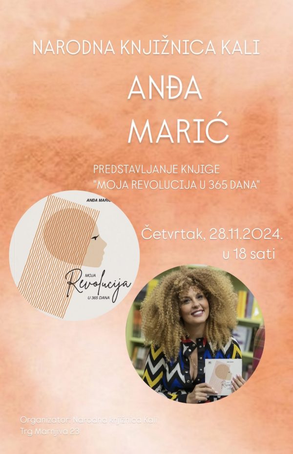 Pozivamo vas na predstavljanje knjige Anđe Marić – Moja revolucija u 365 dana u četvrtak, 28. 11. 2024. u 18:00 u Narodnoj knjižnici Kali.